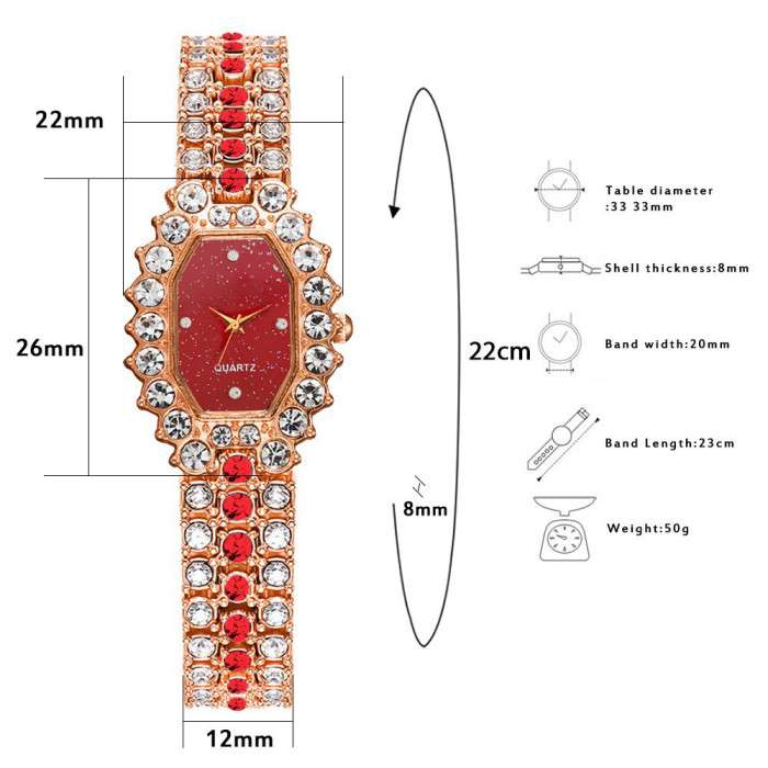 Fashion Simple Women Watches With Bracelet Set Quartz Wristwatch Shiny Stone Red Colour